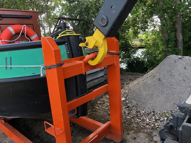 De constructie is afgestemd op de rompvorm en het gewicht van de werkboot, zodat de belasting optimaal wordt verdeeld en beschadiging wordt voorkomen.