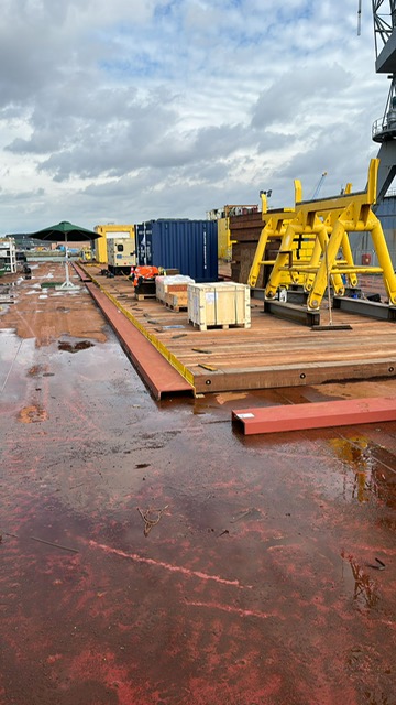 Na een zorgvuldige voorbereiding en het vastzetten van ponton P73 met stalen kettingen en rigging, werd het ponton veilig en zonder incidenten naar Italië vervoerd.
